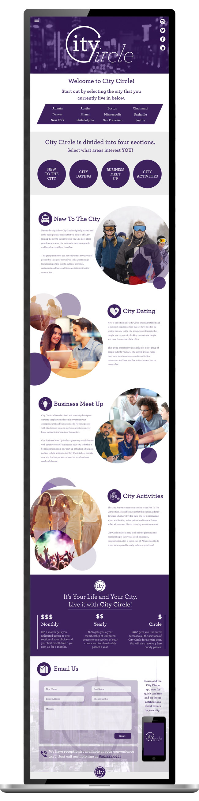 City Circle is a platform for members to build and establish relationships online and in person. The challenge, to build an attractive brand that appeals to millennials and conveys the company’s passions. The solution was to design a brand that is fresh and appealing to an active on the go, instant gratification generation. City Circle’s design helped achieve this by encompassing the company’s name and values all in one with a powerful and sleek mark. The color resembles a sense community and pride in being a member. The font is clean with a modern yet subtle serif.